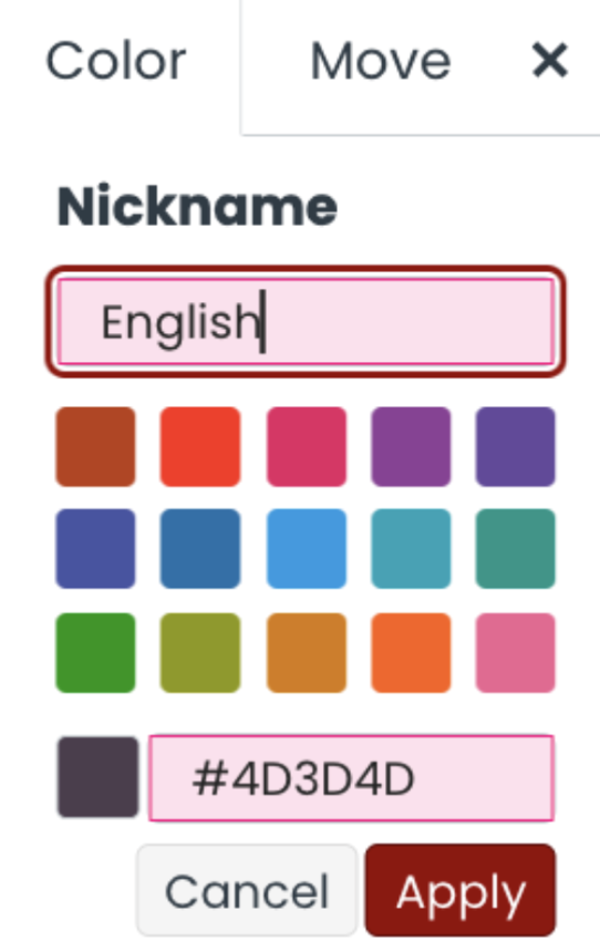 To change the color of the text, background, and border, you will first need to turn on “Dark Mode” with the switch located on the top left of the extension. Then, you can scroll down to the bottom and select the “Dark Mode” button to enter customization. You can select a preset mode or create your own from a color select tool or by typing in hex codes that you can pick out with a quick Google search. If you want to change the overlay colors of your cards, you can do this straight from Canvas. Click the three dots in the top left of your cards, then select a color or type in a hex code. Make sure to hit “Apply.” You can also disable the card overlays on the right side of Better Canvas by toggling the disable switch.