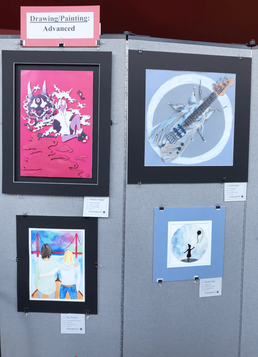 “This was our 24th year of hosting this show. The first one was in 1995, and it’s a department-wide show for the ‘visual’ part of the Visual Performing Arts Department,” Visual Art teacher Craig LeClaire said. “We have an art show in each of our classrooms of students’ works for our open house night, and I select from those with some of my colleagues. They come in and we say ‘let’s put that one in the Art Show,’ so Open House is kind of like the preliminaries to get into our big Art Show in the end of the year.” He also notes that “last year was the first year we have had it on campus and it was pretty successful, so we decided to keep it here.” LeClaire hopes to “keep [the displays] up longer, as that is what we really want to do.”