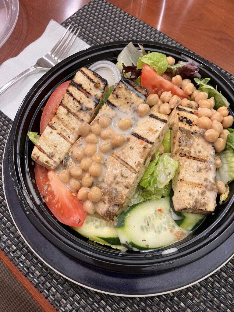 The Jerk Pork is flavorful, but fatty, and the beef oxtail is tender and easily falls off the bone. The Jerk Chicken is a solid option that still has the same flavor as the others and the meat is leaner. A lighter option with fish and great flavor is the Jerk Salmon and Mixed Green Salad, and an option without any meat that is also delicious is the Vegetarian Jerk Tofu Salad. Trujillo also said that in addition to these items, “the Curry Goat is very popular.”