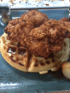 When it comes to true American comfort food like my chicken and waffles, there’s not much to say; usually, your mouth is stuffed too full of generous forkfuls of food to really ponder over any particular flavors. In this way, I think my review of my meal would be best summed up through the muffled “Oh my God”s and “Wow”s I mumbled to myself through mouthfuls of delicious food. While the side of roasted potatoes and vegetables were amazing in their own right (You can’t go wrong with potatoes, I always say), the chicken and waffles themselves overshadowed everything. It’s uncanny how two so seemingly different foods in fried chicken and waffles can work so well together, but they just do. The difficulty of finding high-quality fried chicken in the Bay Area makes it easy to forget how good a well-made piece of fried chicken taste. However, the texture, freshness, and juiciness of the chicken that came with my waffles were both a refreshing surprise and a mouthwatering meal.