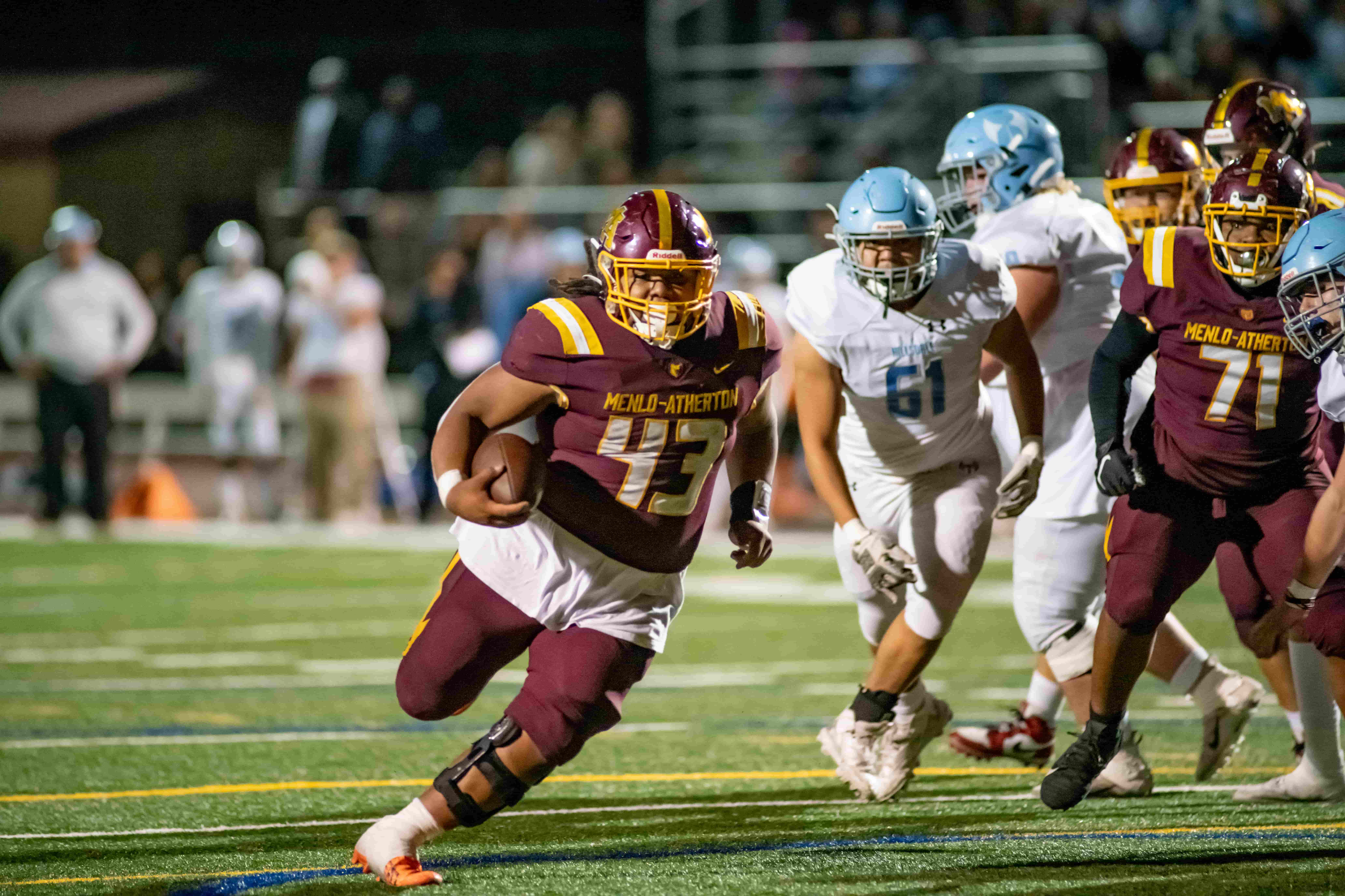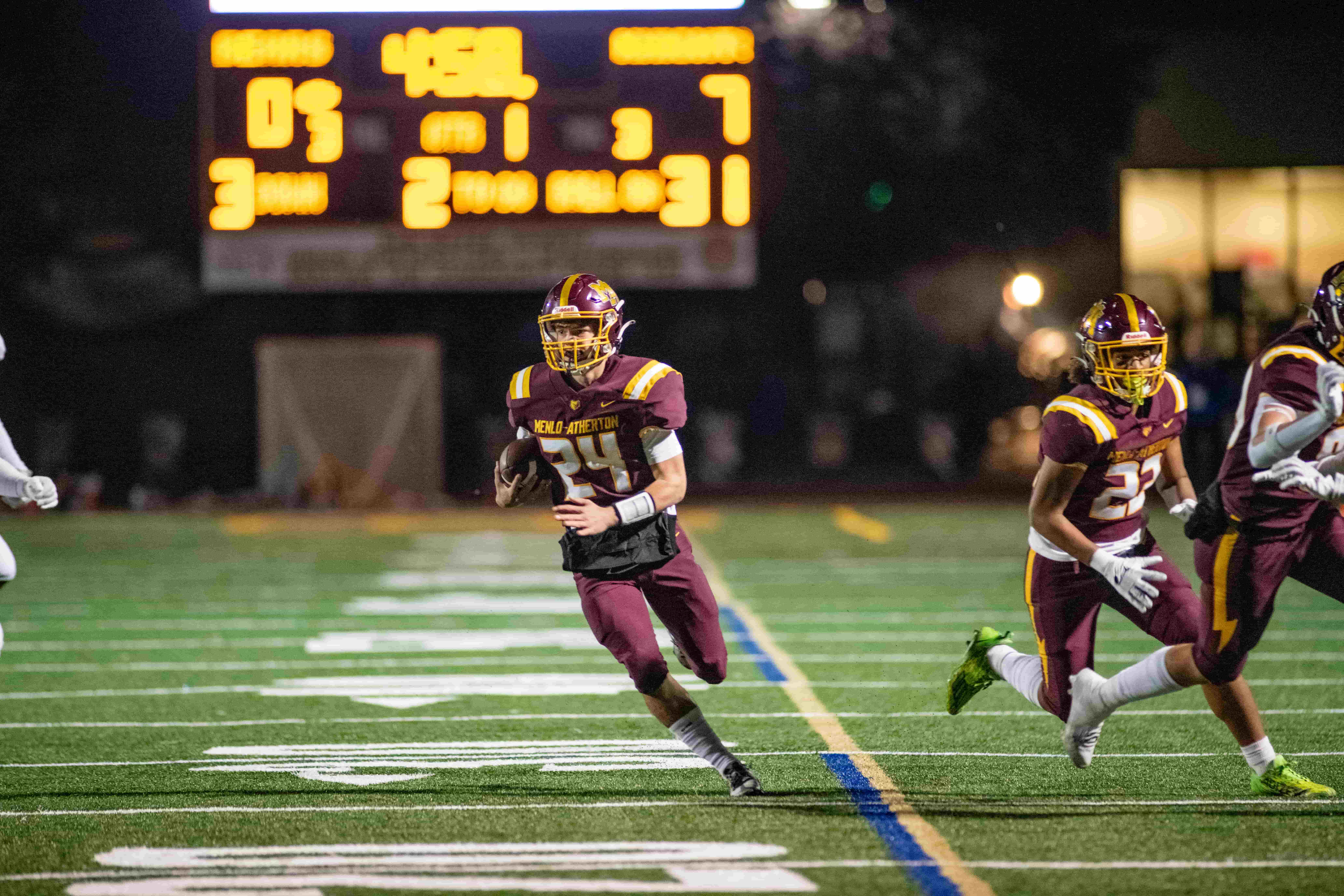 On Friday night, the football team was able to pull away from the Hillsdale Knights in the second half to advance to the second round of CCS playoffs, by a final score of 49-37.