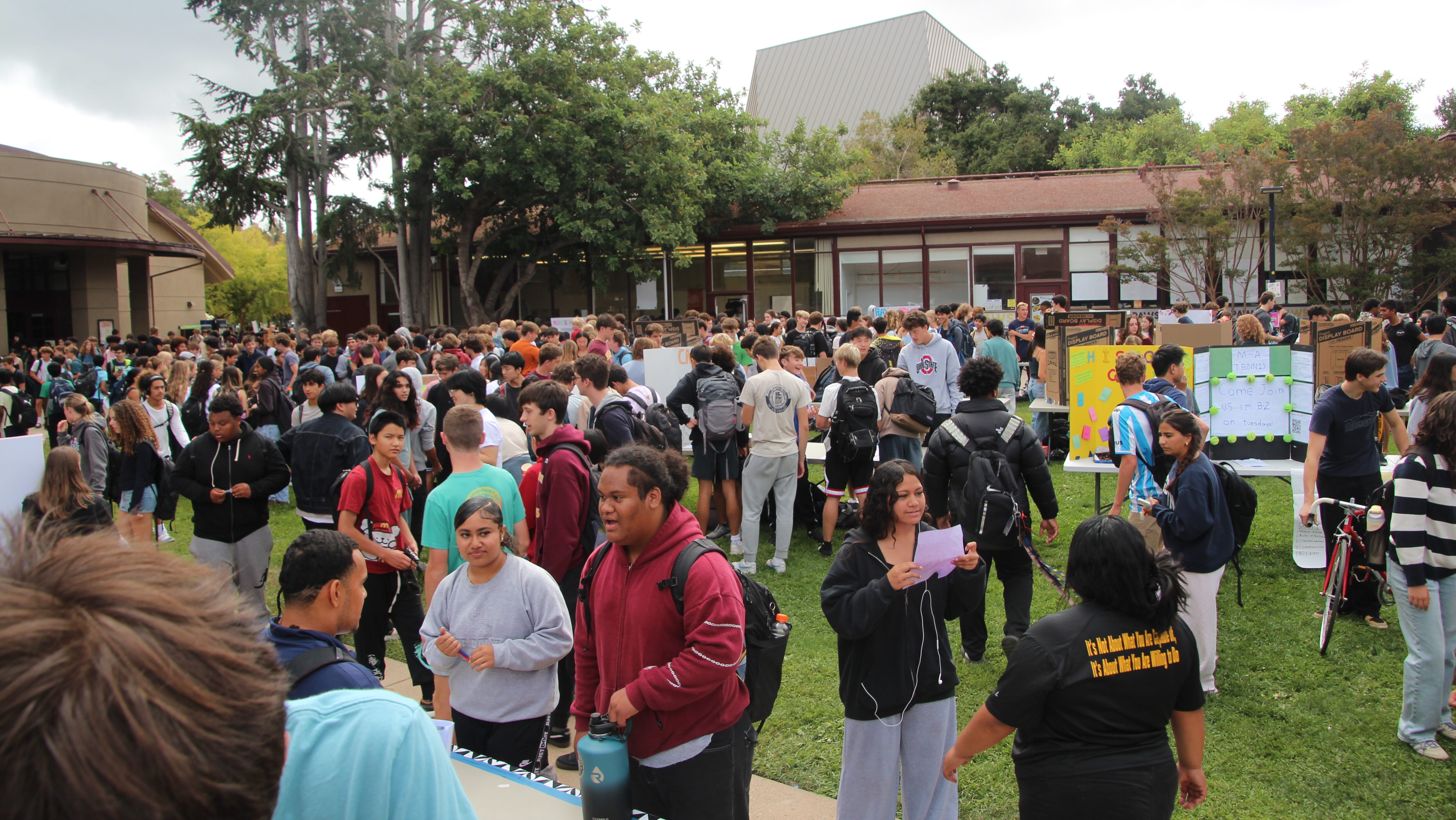 Hundreds of students gathered on the Green to check out and sign up for a wide range of clubs during Club Rush on Wednesday. Clubs lined up with decorated posters, bowls of candy, and spirit to recruit new members. From the new Science-Based Lifting Club to the cultural Intercambio Club and the Service Learning Center, there was a variety of hobby, cultural, and service clubs for Bears to sign up for.