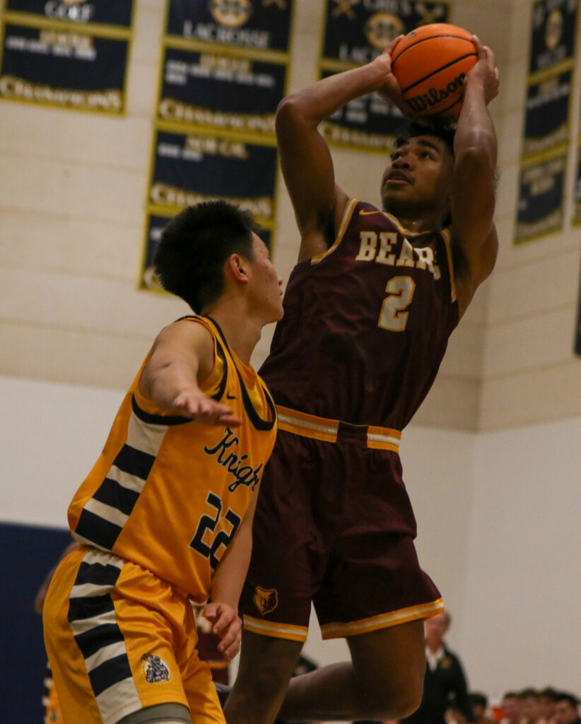The game started off with high intensity as senior shooting guard Luca Auer picked off a Menlo pass for a fast break finish to put the Bears’ first points on the board. The Knights were quick to respond with a bucket of their own, but soon after, senior power forward Jerry Williams launched a pass downcourt to Auer for another fast break, 4-2.
