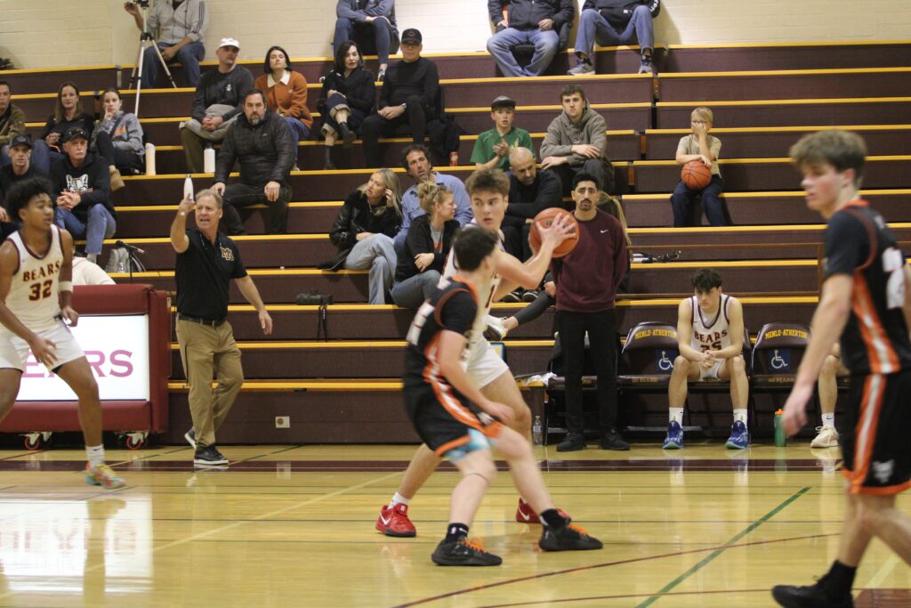 The Bears began the second quarter with the same fierce energy, as junior power forward Aidan Atkins chalked up two jumpers with the help of Cadigan’s steals. The Cougars were desperate for a comeback, but every point for the Cougars was matched by three-pointers for the Bears.