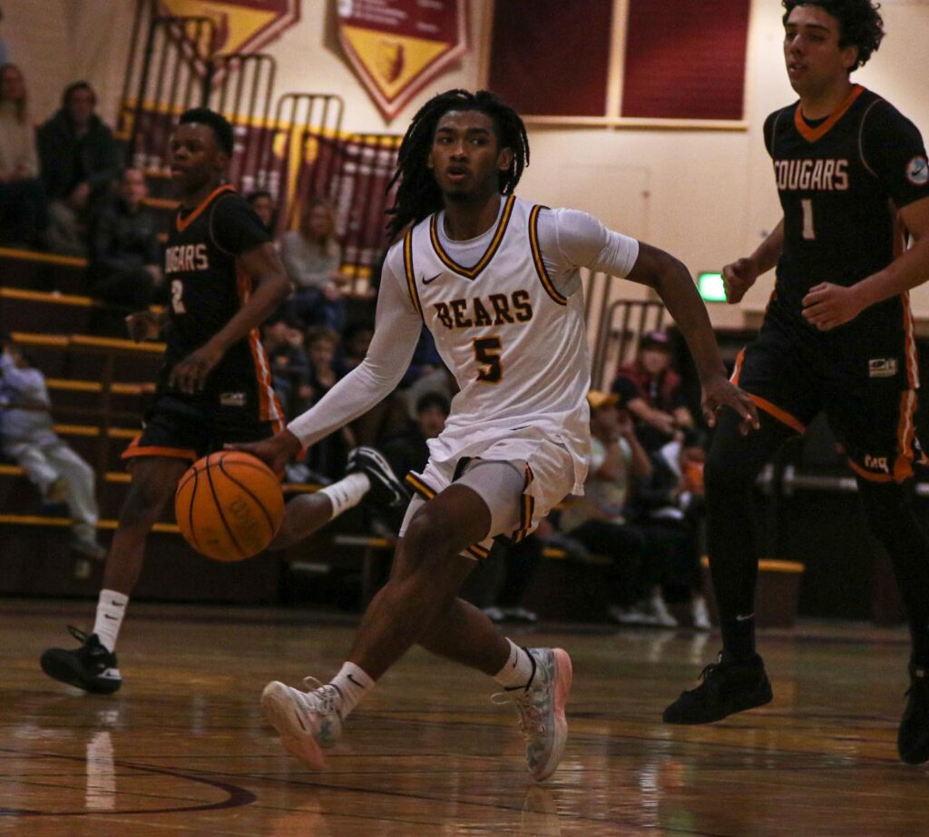 Sutton made his own push offensively, with a floater that just barely found its way into the basket. Abdella and senior power forward Axel Pilette both remained rock-solid on defense, with critical blocks. Unfortunately, the Cougars managed to scrape together a layup and three pointer, knocking the Bears off balance and leading to a couple missed shots.