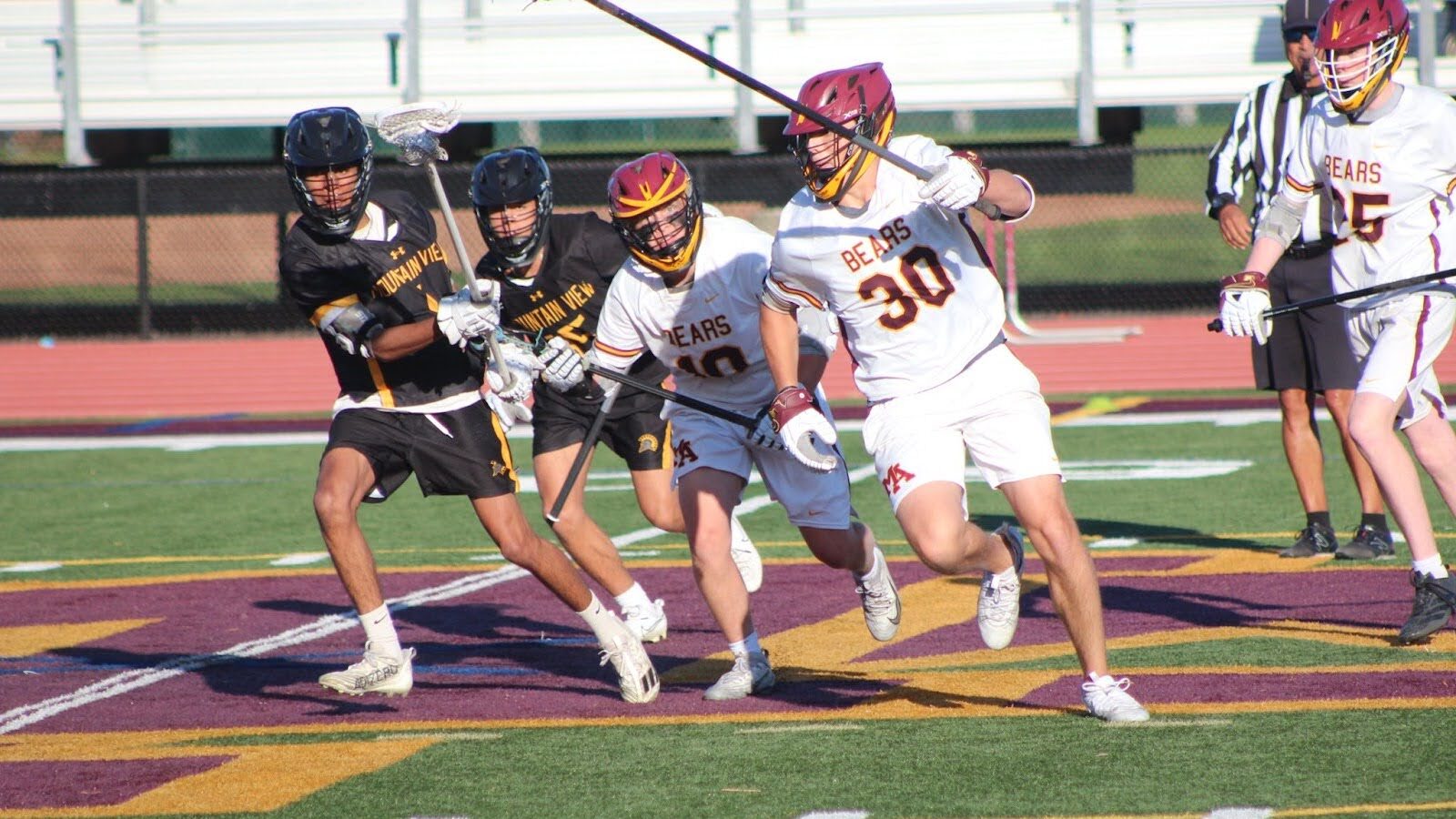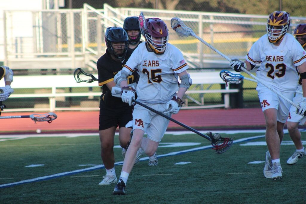 The game began with junior midfielder Sam Huddleston winning the faceoff to gain possession for the Bears. M-A called a timeout just a minute in, and while solid communication set the Bears up for success, they failed to convert any shots on goal due to passing errors.