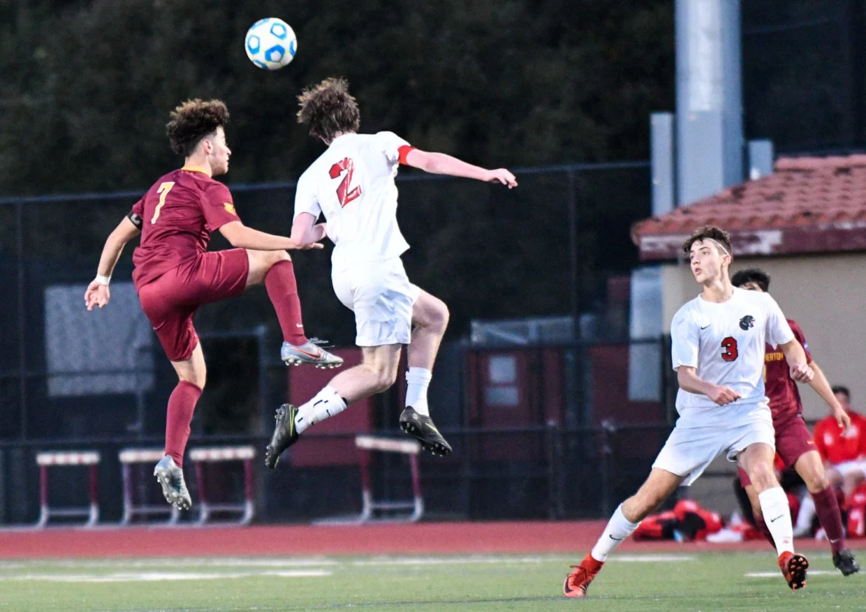 The M-A varsity boys soccer team triumphed with a score of 2-1 over Burlingame last Wednesday, advancing to first place in the PAL.