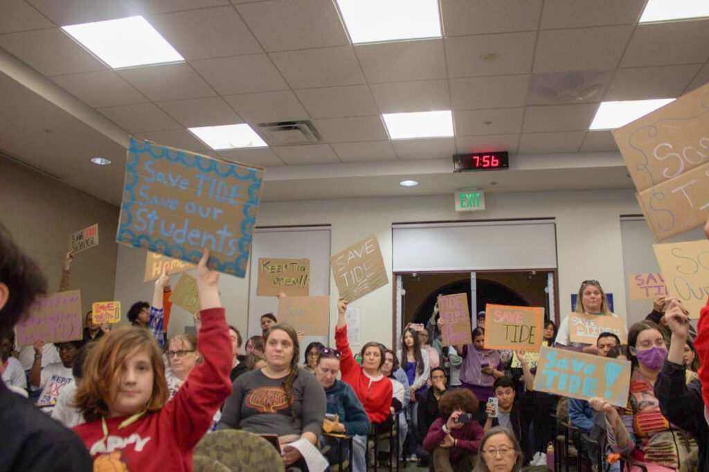 At the beginning of the meeting, attendees criticized the Board’s handling of the closure, alleging that they hadn’t been transparent and hadn’t put together a solid plan despite having months to prepare. Community members urged the Board to reconsider their options and keep the school open, arguing that TIDE students are more than just numbers and that the school’s impact goes beyond enrollment and data.
