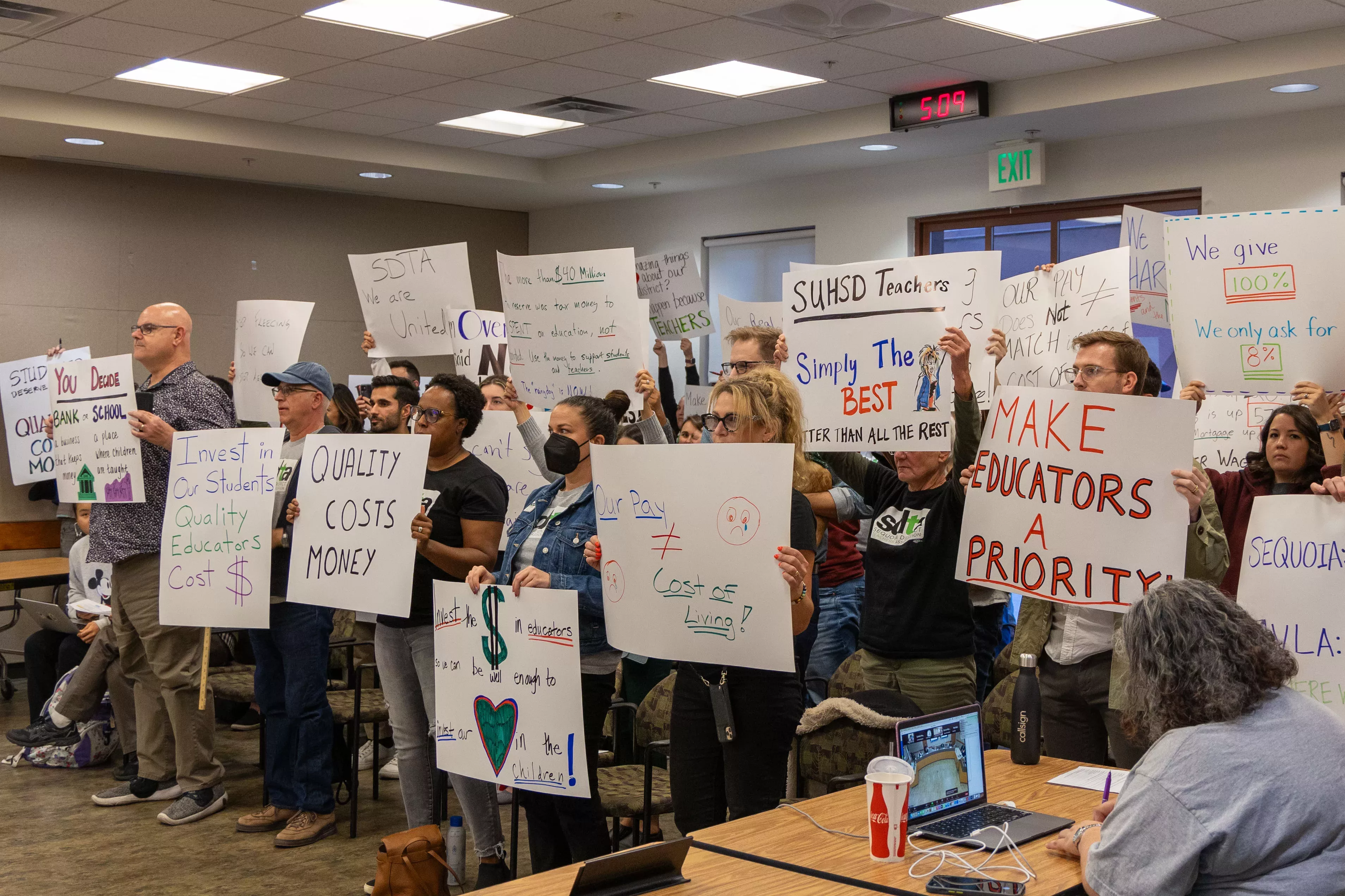 Around 100 members of the Sequoia District Teachers Association (SDTA) protested for raises that more accurately reflect rising inflation at a regular meeting of the Sequoia Union High School District (SUHSD) Board on Wednesday, Oct. 25.