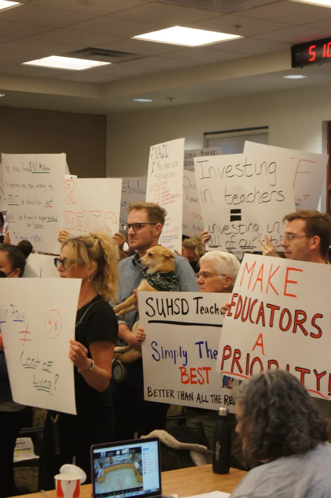 SDTA members also protested at the last regular meeting of the SUHSD board on October 11. However, Wednesday’s lobby far exceeded previous demonstrations in both size and spirit.