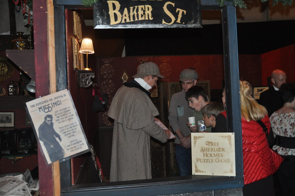 Beyond shopping and shows, the fair also offers many interactive activities. Both kids and adults can give a hand at arts and crafts, from creating fairy houses to imprinting pendants. A fan-favorite activity is the Sherlock Holmes Puzzle Game, where guests must solve a series of riddles and clues to help crack a challenging mystery. Around the fair are clues that help solve the mystery.