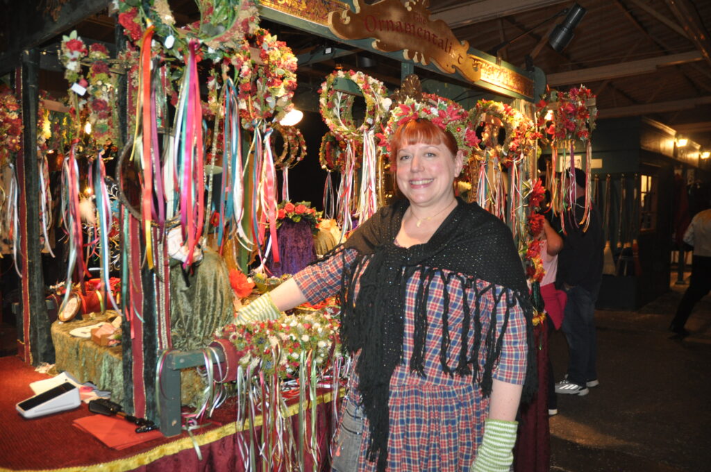 After selling flower crowns at many different Renaissance Fairs, Katie Vardijan, manager of The Ornamentalist booth, considers the Dickens Fair one of her favorites. “It is very different from other fairs because of its creative and festive atmosphere,” Vardijan said. The owners of The Ornamentalist have been crafting these flower crowns for over 50 years, adding a sense of tradition and expertise to their beautiful creations.