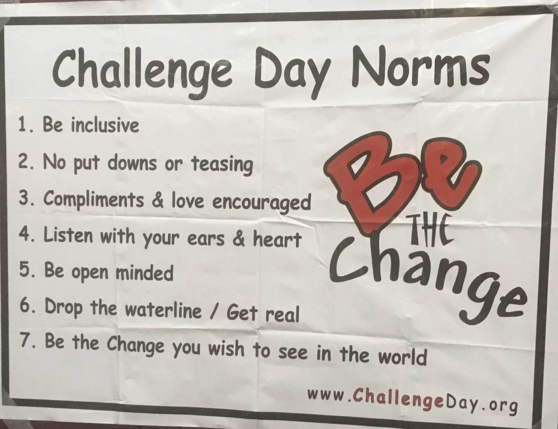 Typically, Challenge Day is an emotionally moving event. Students separate into groups and have time to share their stories: difficulties, triumphs, things they have never told anyone. The day finishes off with a cross-the-line activity; if students have experienced a certain situation, they cross the line. “All of them say that they cry, so I’m not sure if that’s a good thing or a bad thing,” says Dr. Rachel Richards, who teaches blended biology and environmental chemistry.