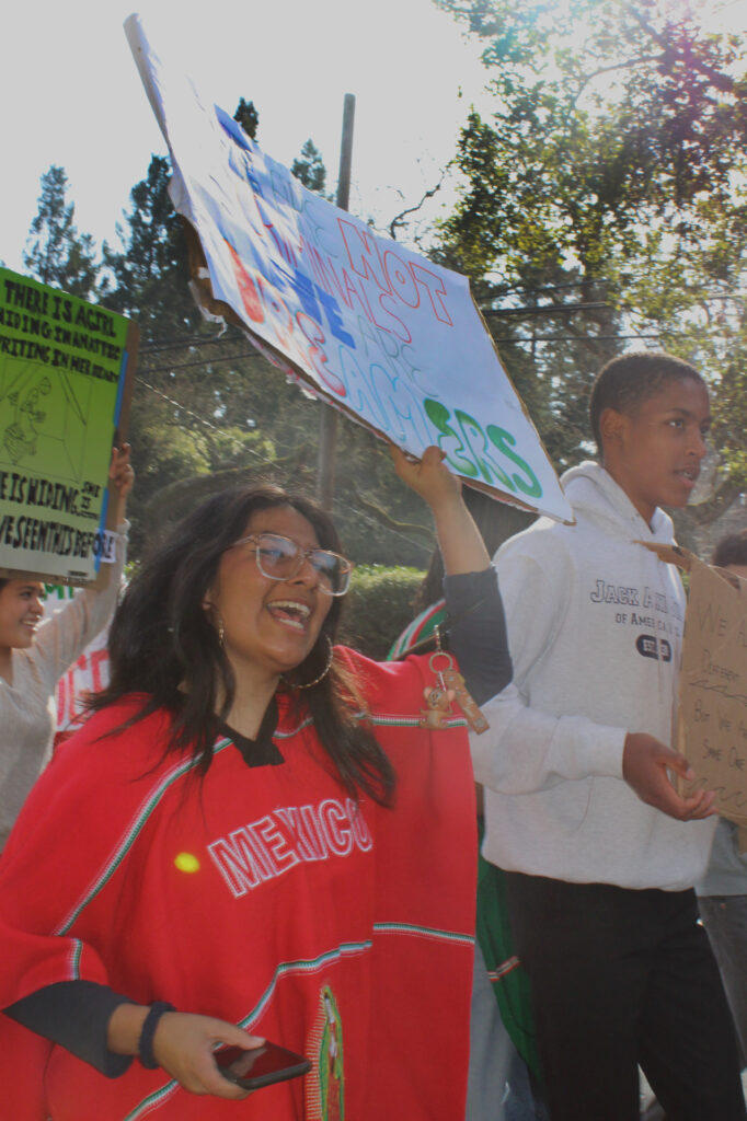 “Algunas personas pueden pensar, ‘Es algo horrible que la gente tenga que protestar para obtener sus derechos’, y sí, eso es muy malo, pero cuando estás en una protesta creo que deberías mostrar más alegría para demostrarle al gobierno y a todos que no están rompiendo tu espíritu”, dijo Elena Cantu Gonzalez, estudiante de séptimo grado de Kennedy.