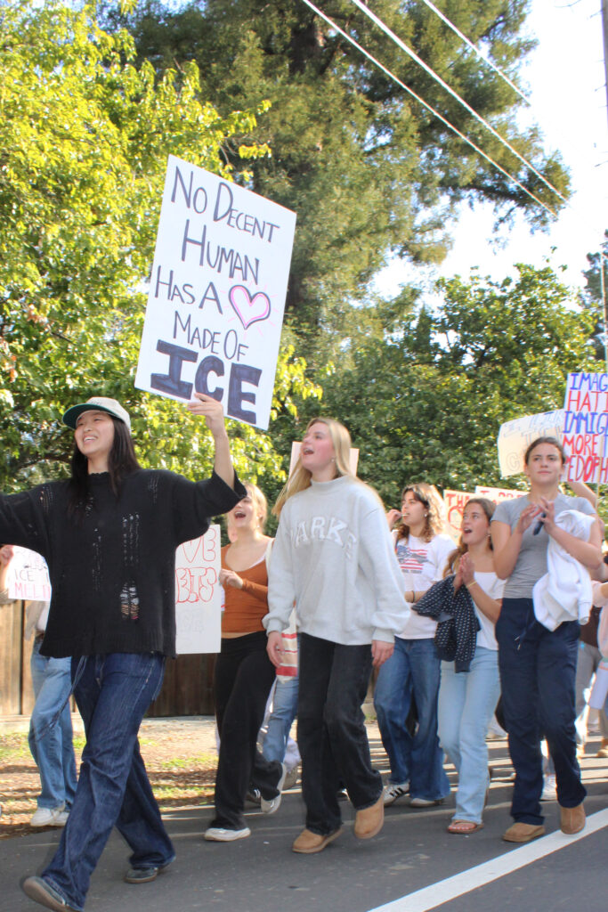 Cuando los estudiantes se acercaron a la intersección de Glenwood Avenue y Middlefield Road, se les unieron 19 estudiantes de la escuela secundaria privada cercana, Menlo School.