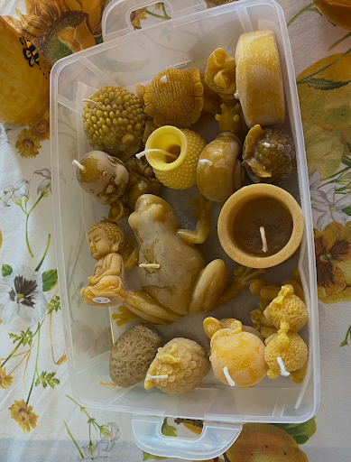 Beekeeper Alla arrived at the event with jars of honey, handmade candles, and a beehive. She explains how difficult the process can be, “Every year I extract a pound and a half of wax which only makes about 10 candles.” Alla described how each part of the hive smells different so each candle has its individual scent. She continues, “Every month I extract honey and two to three boxes make about three gallons of honey.”
