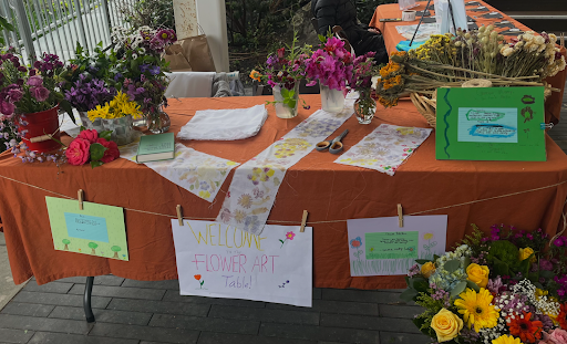 Children huddled around tables creating beautiful arts and crafts that volunteers set up. The Menlo Atherton cooperative nursery school had scratch paper crowns for children to decorate at their station, “I love the Erath Day festival and I love creating these fun eco-friendly crafts for kids so it’s all perfect” said one of the volunteers. People were lined up at the flower press station where there were varieties of flowers to choose from. People pressed the flowers down, hit them with a hammer, and then revealed a pretty design that was created.