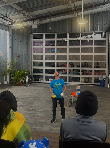 The one-man show from Hearty combined juggling, unicycling, and comedy to teach children about the environment along with the safety of walking or rolling to school. Children giggled as Hearty unicycled around the stage and juggled colorful balls resembling the sun, earth, and moon.