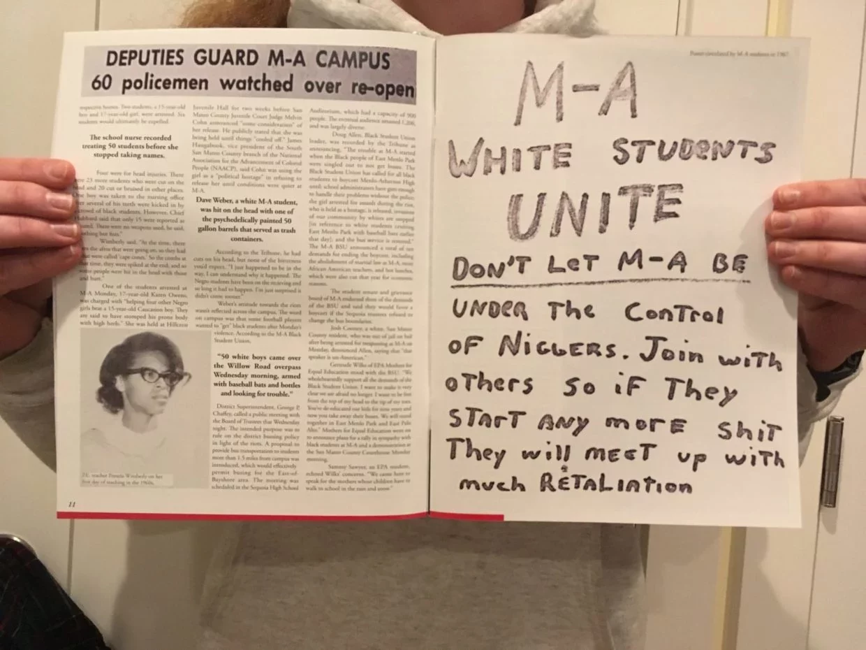 In the most recent issue of our magazine, the Mark, staff writer Alana Hartsell wrote a lengthy article that covered the race riots that occurred at Menlo-Atherton during the 1960’s. Among other primary sources included in the article was a photo of a poster circulated around M-A in the year 1967. The uncensored poster, which included the N-word, highlighted the racist views held by some on campus at the time. The poster took up an entire page within the article, with a caption in the corner saying, “Poster Circulated by M-A Students in 1967.”