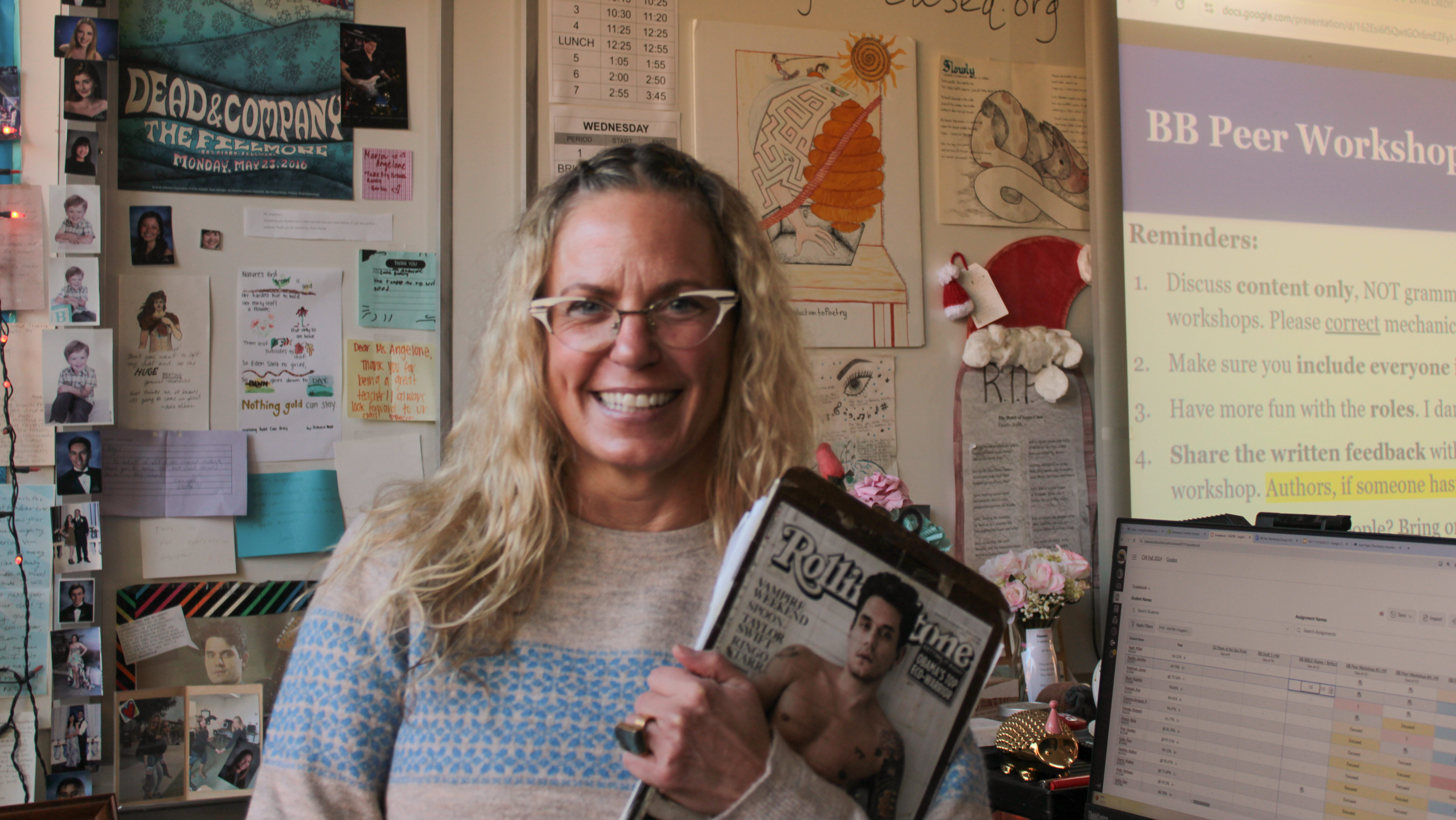Angelone follows her daily objective: love and celebrate language. “I really have so much enthusiasm for all of the poems I teach, all of the stories I teach, all of the concepts I teach,” Angelone said.