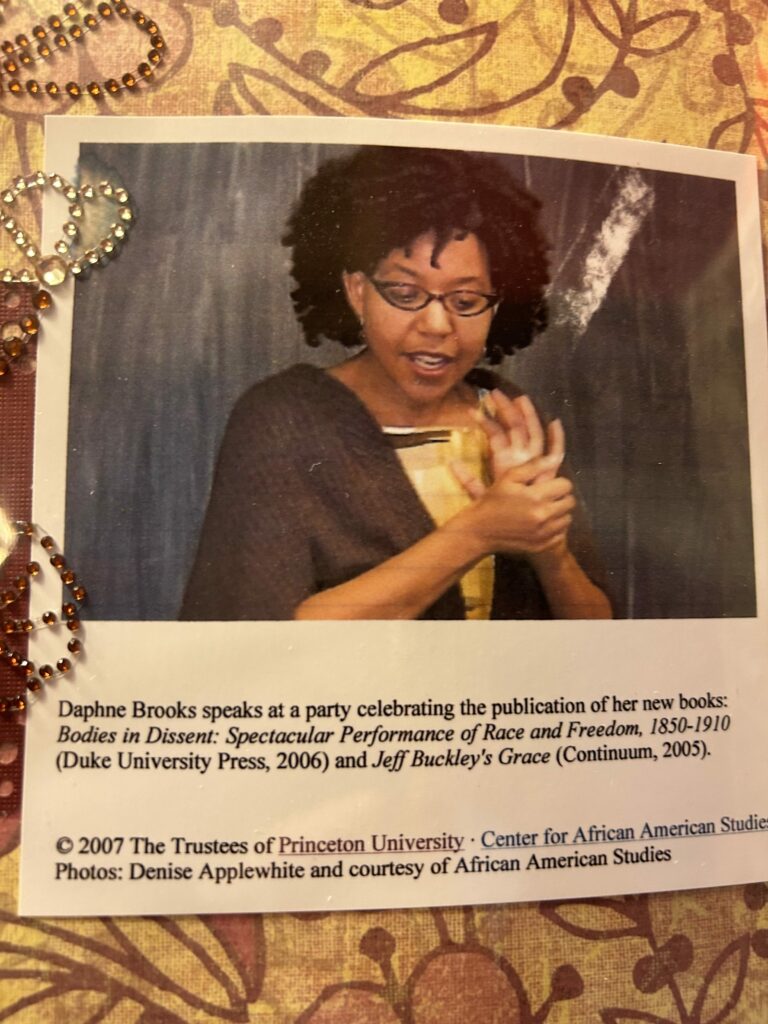 Since 1999, Brooks has taught at UC San Diego, Princeton, and Yale. She currently serves on the faculty at Yale and has been there for almost ten years. She teaches in four different departments. She explained, “Although I’m a friend to English, I am not on the faculty in English any longer (Brooks taught in the English Department and African American Studies at Princeton for 13 years), but I love teaching in interdisciplinary units. I can teach history, music, literature, theatre, feminist theory—whatever I need to tell the story of what it is my classes are pursuing.”