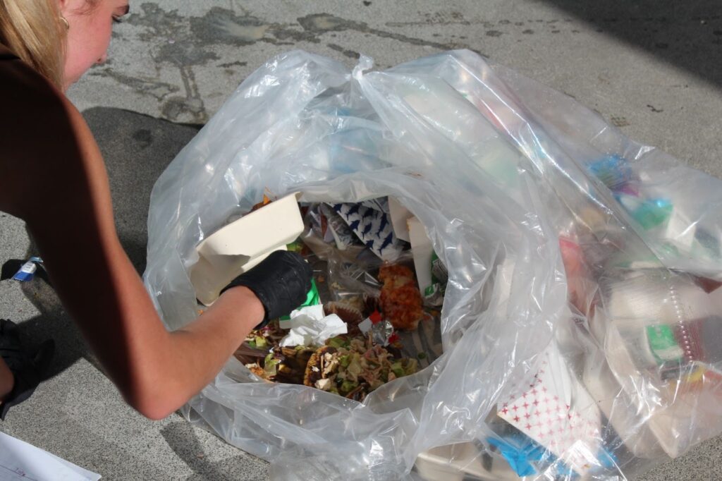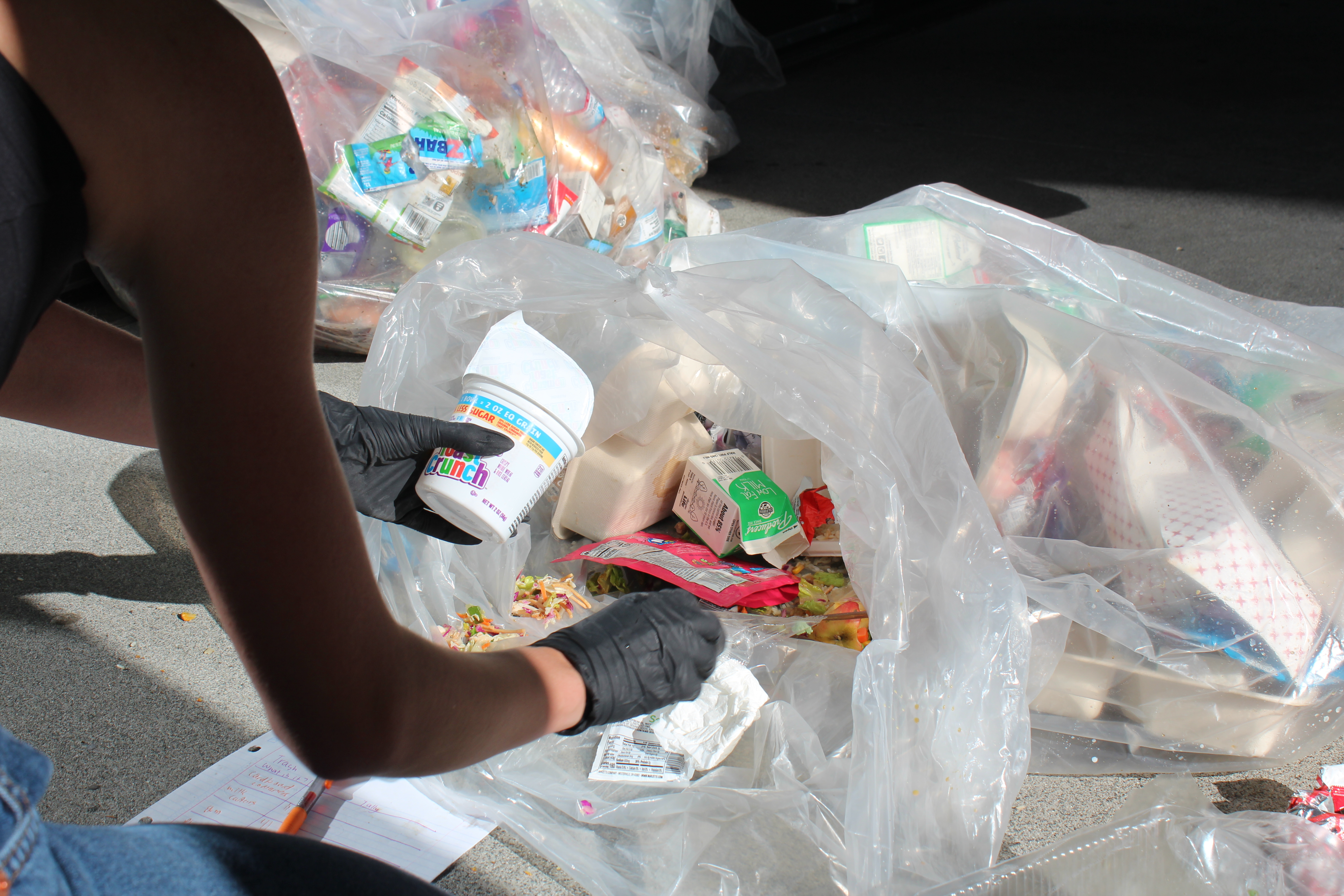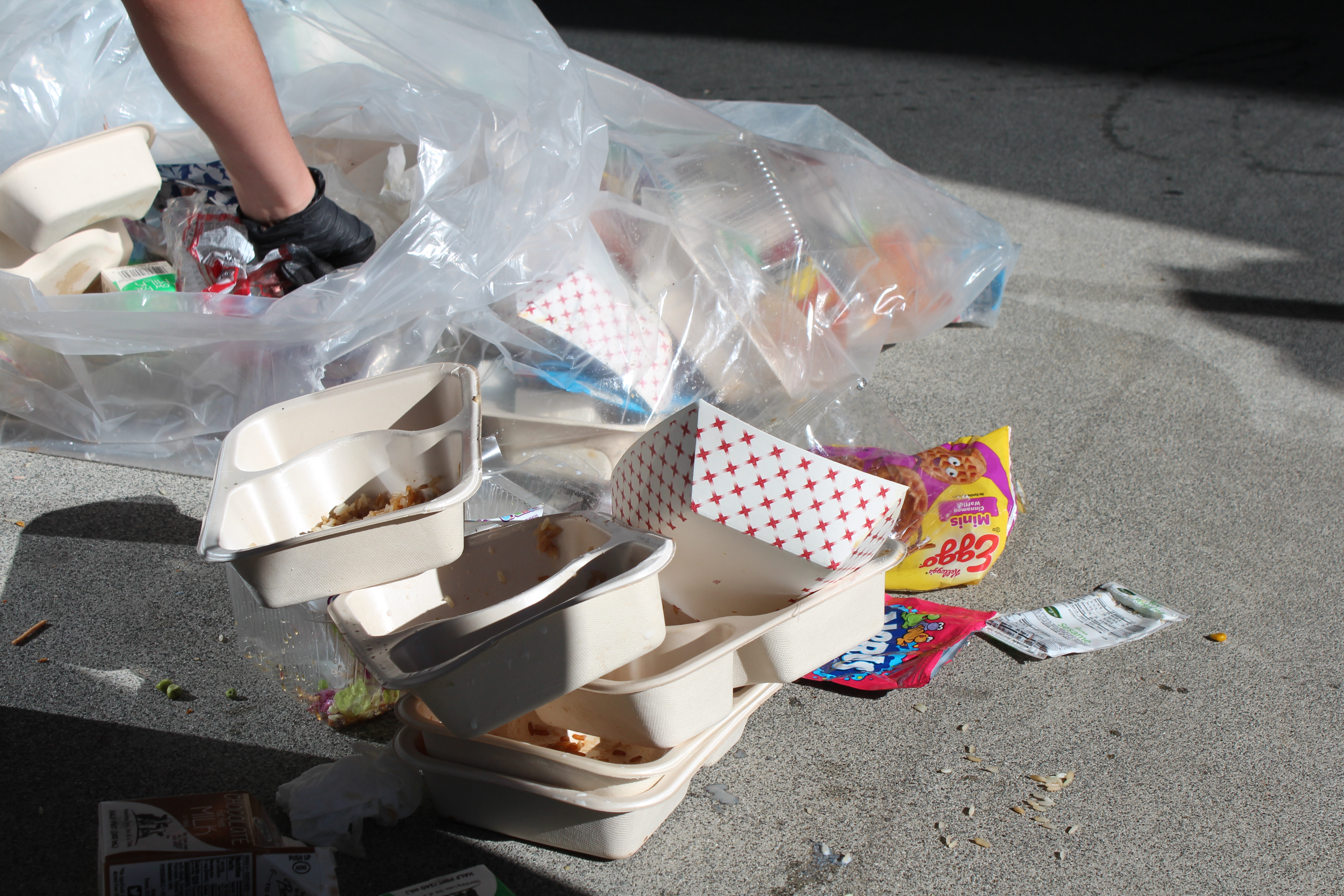 The landfill bin contained a wide genre of materials, many of which did not belong there. Beneath the layer of countable items, there was a mushy mixture of food scraps, which cannot be placed in the landfill bin. Landfills are designed to exclude oxygen, so when food breaks down without air, it releases greenhouse gases like methane.