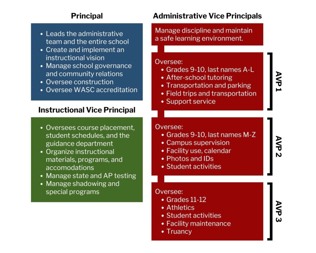 The District itself should also devote more time to preparing new administrators, as credential programs are broad and every school district is unique. District administrators attend a one-day meeting over the summer to review policies, but this isn’t sufficient to fully acclimate them to the intense environment of their job. Dedicating more time to understanding their daily roles could help administrators start with more confidence. While true experience can only come with time, in such an intense environment, increased onboarding is necessary to better transition new administrators into their roles.