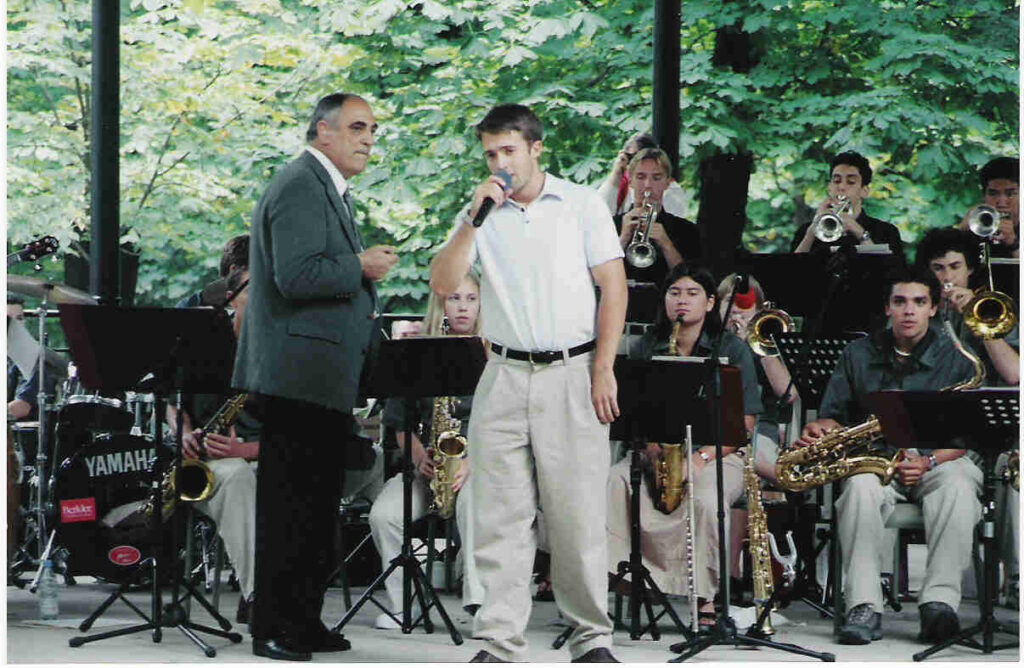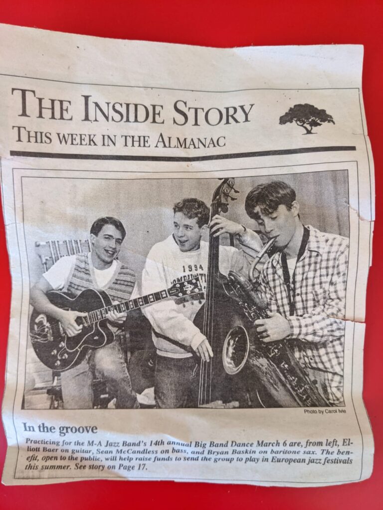 At M-A, Baer continued to pursue music as a member and manager of the jazz band, singing and playing guitar at school events and dances. “We got to play at these really famous jazz festivals in Europe because our band director, Frank Moura, had great connections. We were playing with celebrity artists at these festivals, and weren’t necessarily qualified to do so, but it was a total blast and a great growth experience for us,” he said.