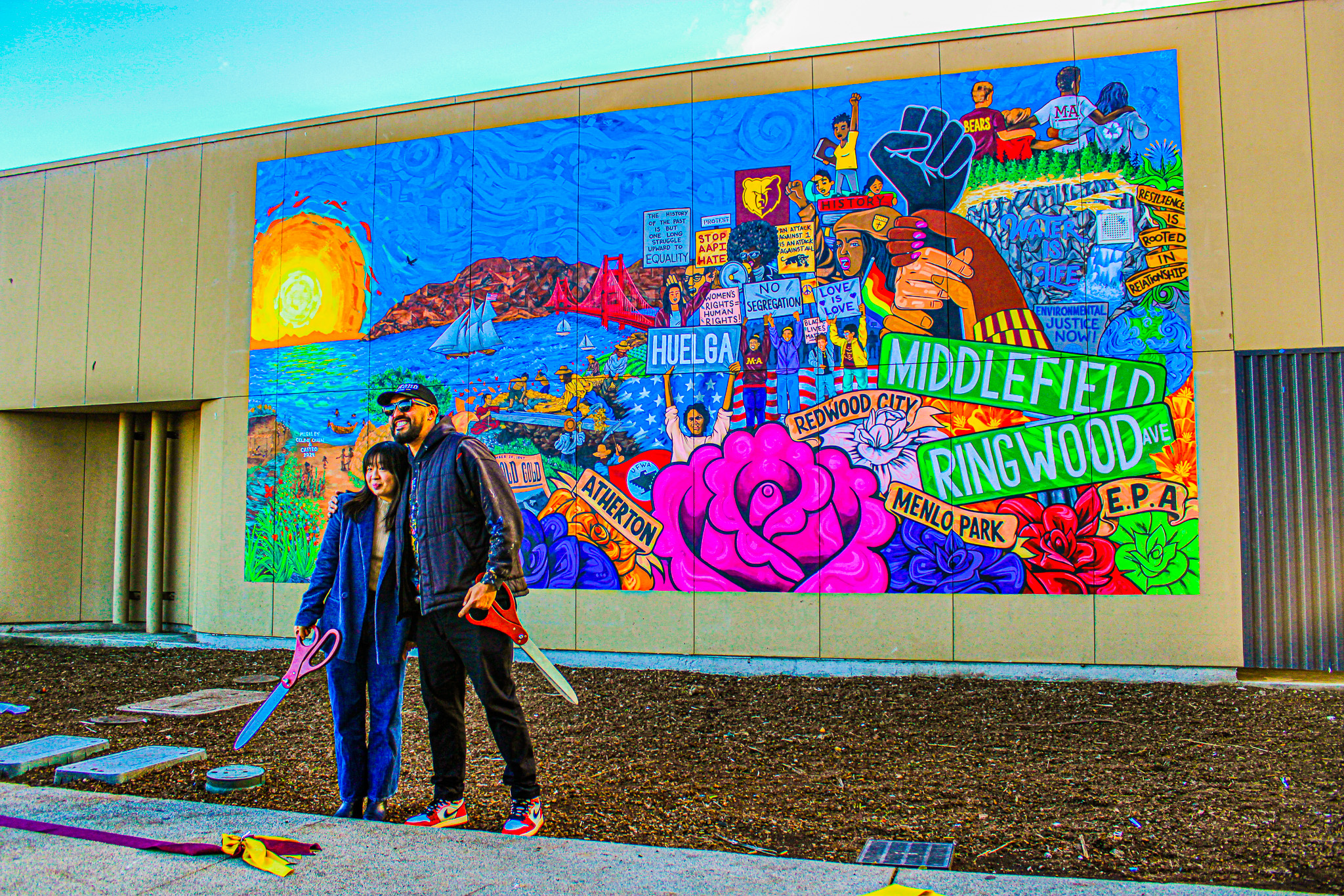 February 6th marked the official reveal of the new Ethnic Studies mural near the G-wing. The school brought out balloons, a podium, plenty of food, and a red and gold ribbon to celebrate the occasion. Three members of the Sequoia Union High School District Board of Trustees came to view the mural. Principal Karl Loosekoot, painter and M-A ‘09 alum Jose Castro, and the mural’s designer, junior Celine Chien*, spoke about the mural.