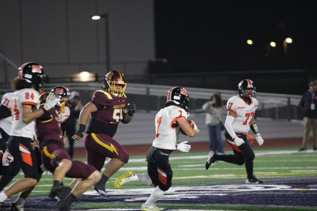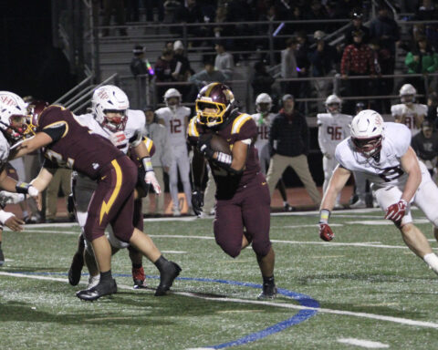 On defense, M-A stacked the line, holding the Bearcats just one yard from the end zone. However, San Mateo managed a touchdown and later recovered an onside kick to score again, narrowing the margin to a nail-biting 31-21. Senior defensive end Kolei Maile helped stop the Bearcats’ final attempt at a comeback to give the Bears some breathing room.