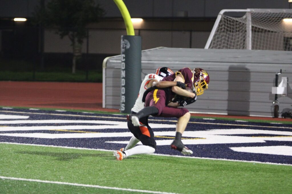 Back on defense, the Bears stayed aggressive. Penalties slowed the Bearcats down a little, and Ama made a crucial tackle on second down. After a false start by M-A and another powerful tackle by junior middle linebacker Cameron Talamoa, M-A regained possession, ending the third quarter with a 24-7 lead and full control of the game.