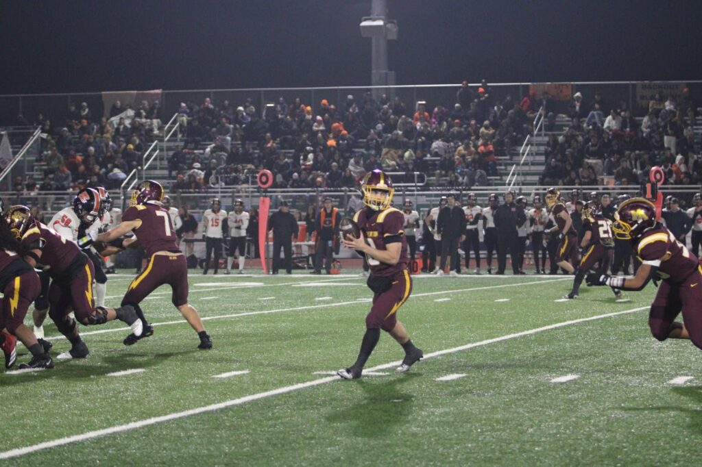 When M-A got back to offense, Dacey showcased his mobility, running the ball downfield to gain a few yards. Despite an illegal block penalty, the Bears’ spirits remained high, using a timeout to set up a fourth-down plan. Turner followed with a solid run, pushing the Bears in reach of the end zone.