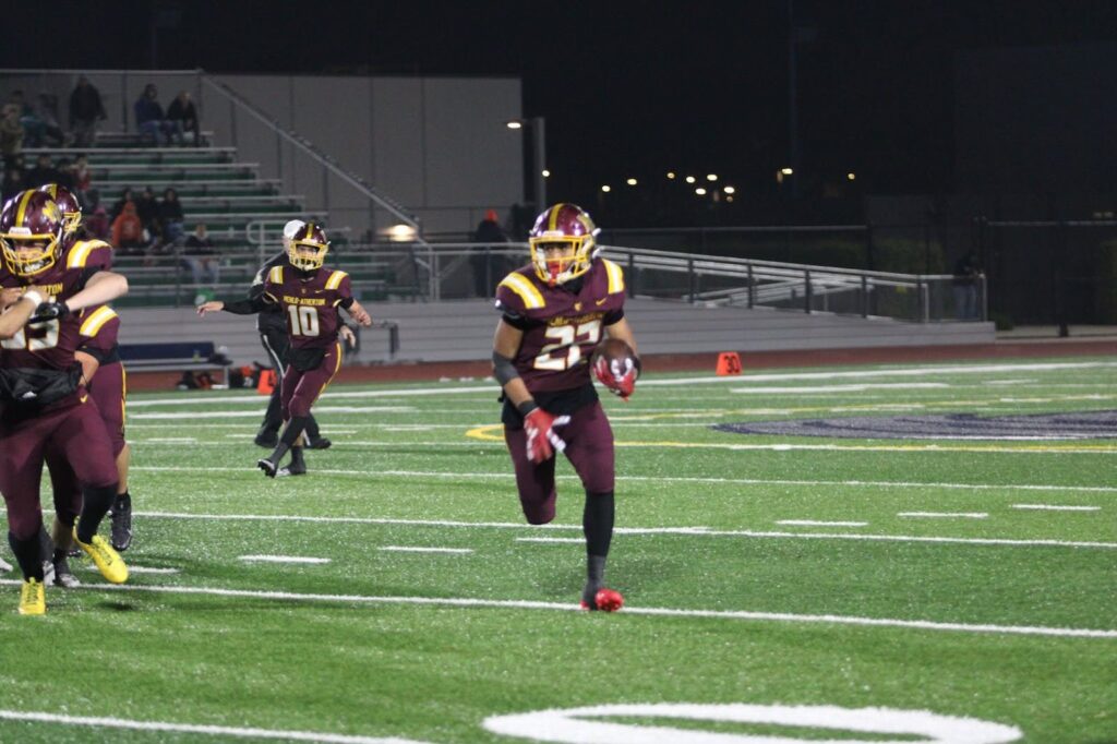 M-A kept their momentum by starting the second quarter off with senior running back Monty Turner bolting down the sideline to increase their lead to 14-0. Immediately after, senior kicker Anthony Perez executed a kick that the Bearcats fumbled, allowing M-A to keep the possession and continue to put pressure on San Mateo’s defense.