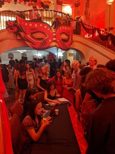 The 93-year-old theatre was very elaborate. Red lights illuminated the grand entry hall, and students took in Leadership’s masquerade-themed decorating while checking in.
