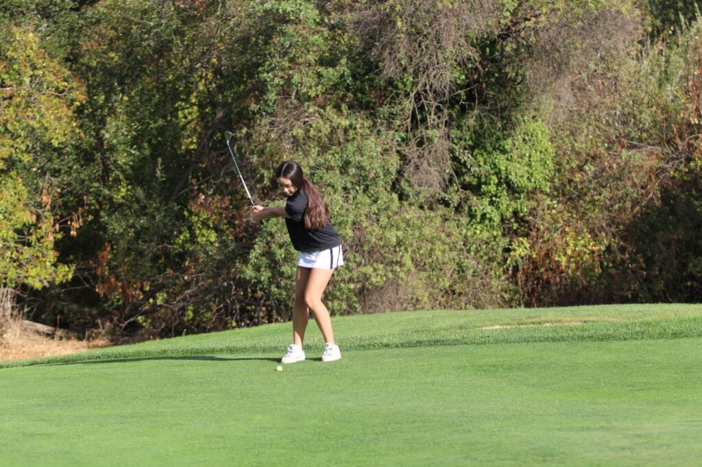Freshmen Savannah Lee, Hadley Collins, and Sofia Nguyen finished their matches with 45 strokes, 64 strokes, and 59 strokes, respectively. In hole four, S. Nguyen managed to escape a sand bunker, setting herself up for an approach to the green.