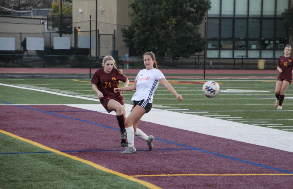 Woodside monopolized possession at the beginning of the first half, but interceptions and tight defense from junior center midfielder Samantha Ruiz gave the Bears opportunities to control the game’s flow. 20 minutes into the game, the Bears began to piece through Woodside’s defense, and junior midfielder Maddie Bradley fired the ball but narrowly missed, bouncing off the right post.