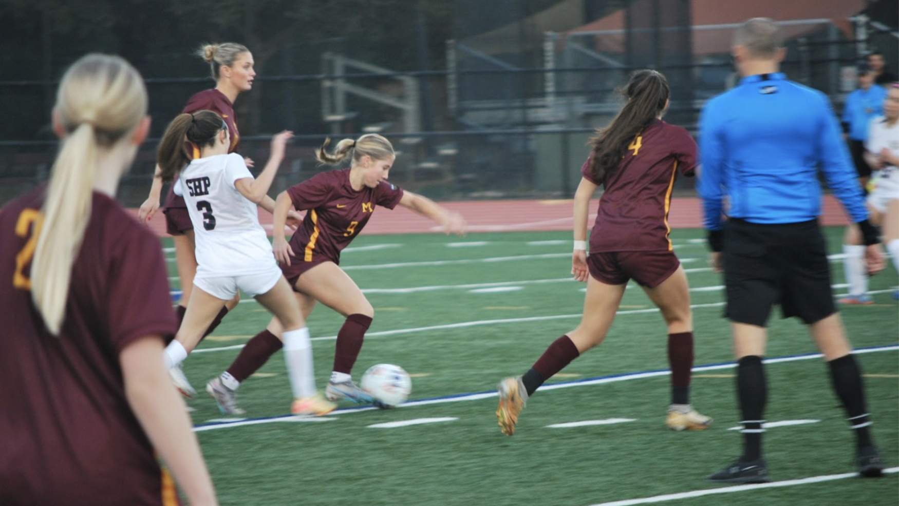 Sophomore forward Stella Hall took hold of the ball numerous times giving M-A opportunities to attack, but the Gators’ defense was strong. The Bears’ defense held up strong as senior Alessia Bolanos delivered a decisive block that stopped a Sacred Heart attack.