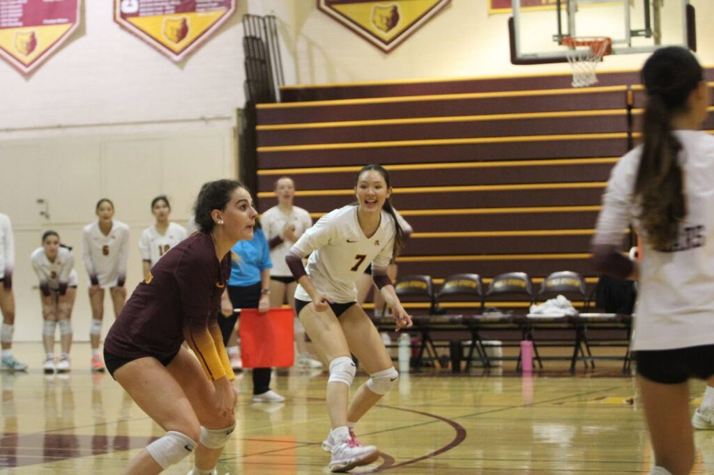 Alex Sanchez Jara / M-A Chronicle Freshman setter Calista Chou sets up Greenbaum for a spike.