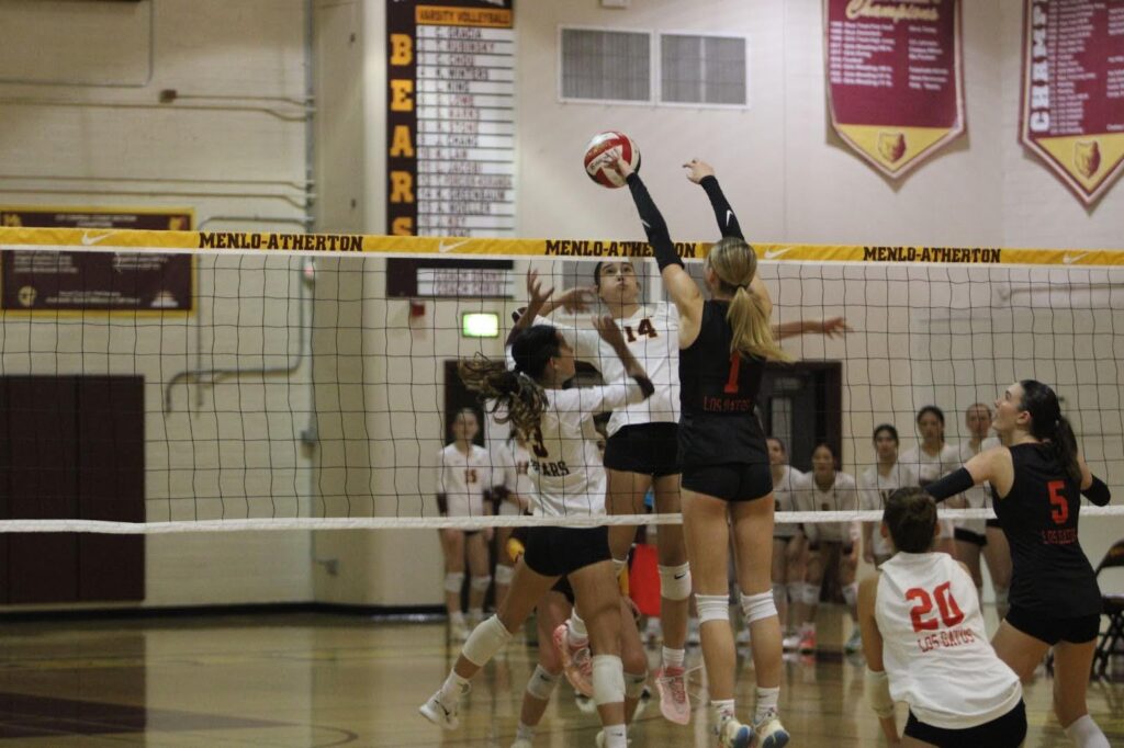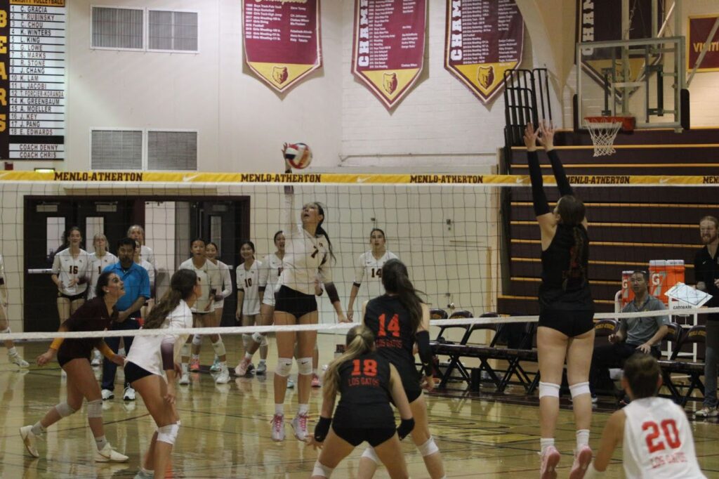 A tactical setter dump from Chou brought the Bears even closer to the Wildcats, and crumbling under the immense pressure, Los Gatos was forced to call a timeout. Mistakes from the Wildcats, along with a tip from sophomore outside hitter Gabriella Lowe, tied the teams at 23-23. Lowe took matters into her own hands and got another tip and a jaw-dropping kill, snatching the lead back for M-A, 26-25.