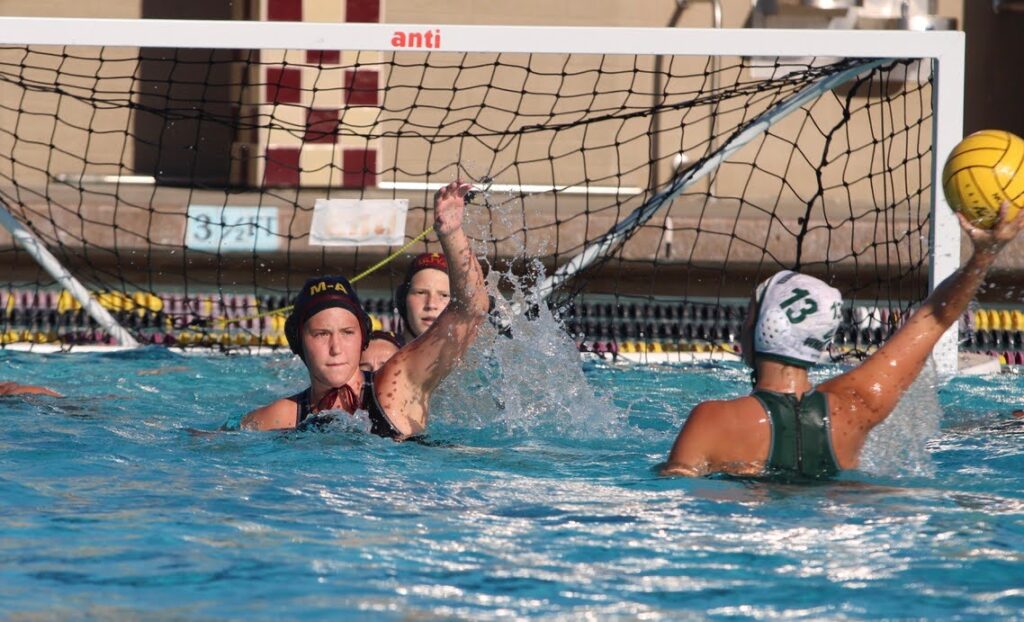 In order to regroup and focus on communication, M-A called a timeout midway through the quarter. Back on the clock, senior Isabel Habibi* attempted to score, but was unable to penetrate the cage. Paly racked up a considerable lead in the last two minutes of quarter one, scoring three more times to make it 5-0.