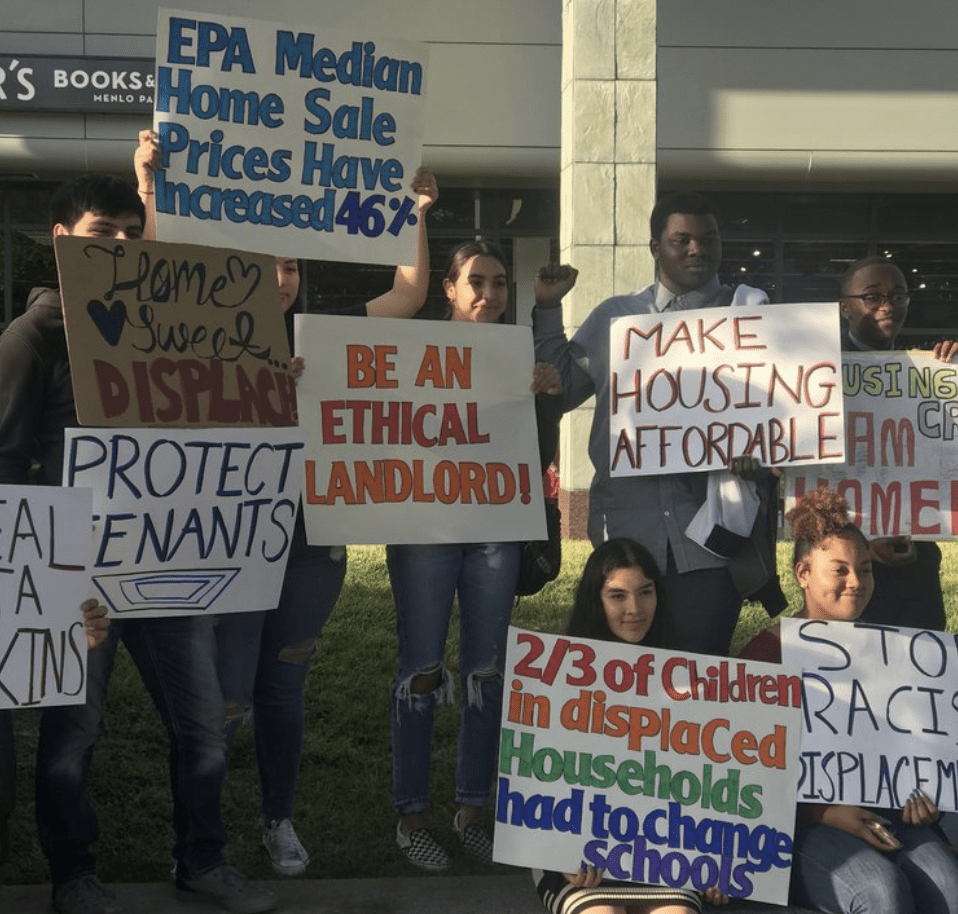 M-A alum and current East Palo Alto (EPA) resident Filiberto Zaragoza explained, “I rent in the Woodland Apartments in East Palo Alto, and it is hard. My parents and I work full time, and we’re not a super big family, but even still, we pay a massive chunk to the Woodland landlords. Although we manage to afford it, if something happened to my Dad, we wouldn’t be able to live here anymore.”