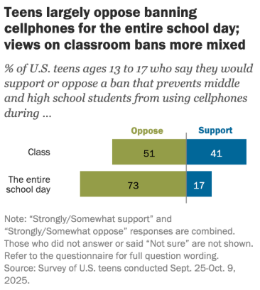 This highlights a major flaw in the policy: while many teachers set clear guidelines for their classrooms, students often ignore these rules, choosing to use their phones for social media or mobile games. According to a 2025 survey, 51% of teens oppose phone bans during class time.