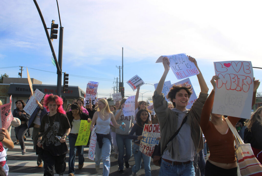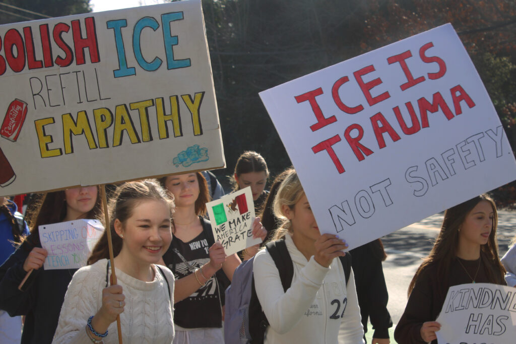 Hundreds of students from M-A and neighboring schools peacefully took to the streets as part of a nationwide walkout against Immigration and Customs Enforcement (ICE) and President Donald Trump.