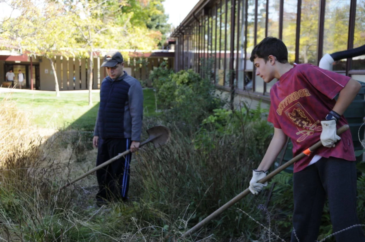 Sophomore Maia Begovic usually rakes or cuts out the weeds and old grass to help clean up the garden. Maia explained “I definitely enjoy working in the garden. I feel like I learn how to work hard.”