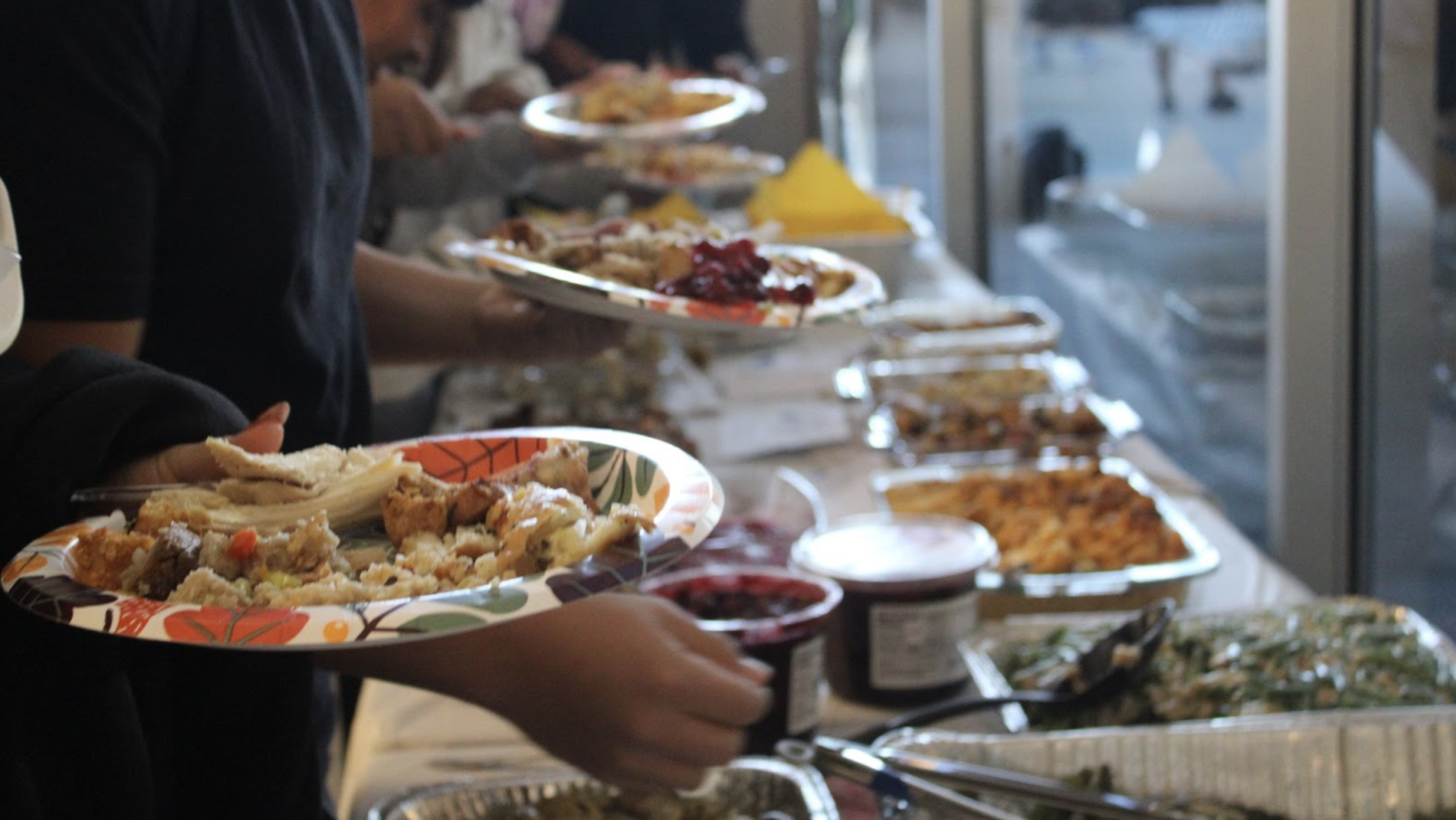 Students lined up at the doors at the PAC Cafe and filled their plates with the various options of food and desserts to try, from green bean casserole to apple pie. The Intercambio Club and parent volunteers helped serve the food.