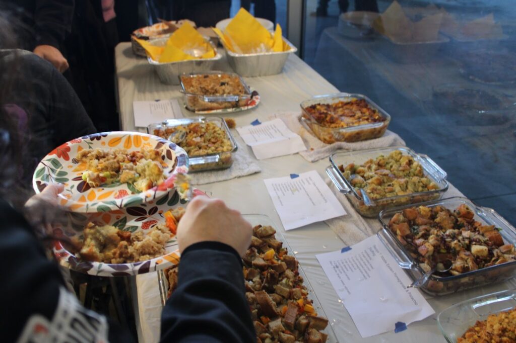 The tables were full of classic Thanksgiving dishes like turkey, ham, cranberry sauce, and mashed potatoes with gravy. With the aid of the Career Tech Education (CTE) Food and Nutrition class, students made a variety of stuffings, from Hawaiian pineapple and Portuguese sausage to a classic American herb.