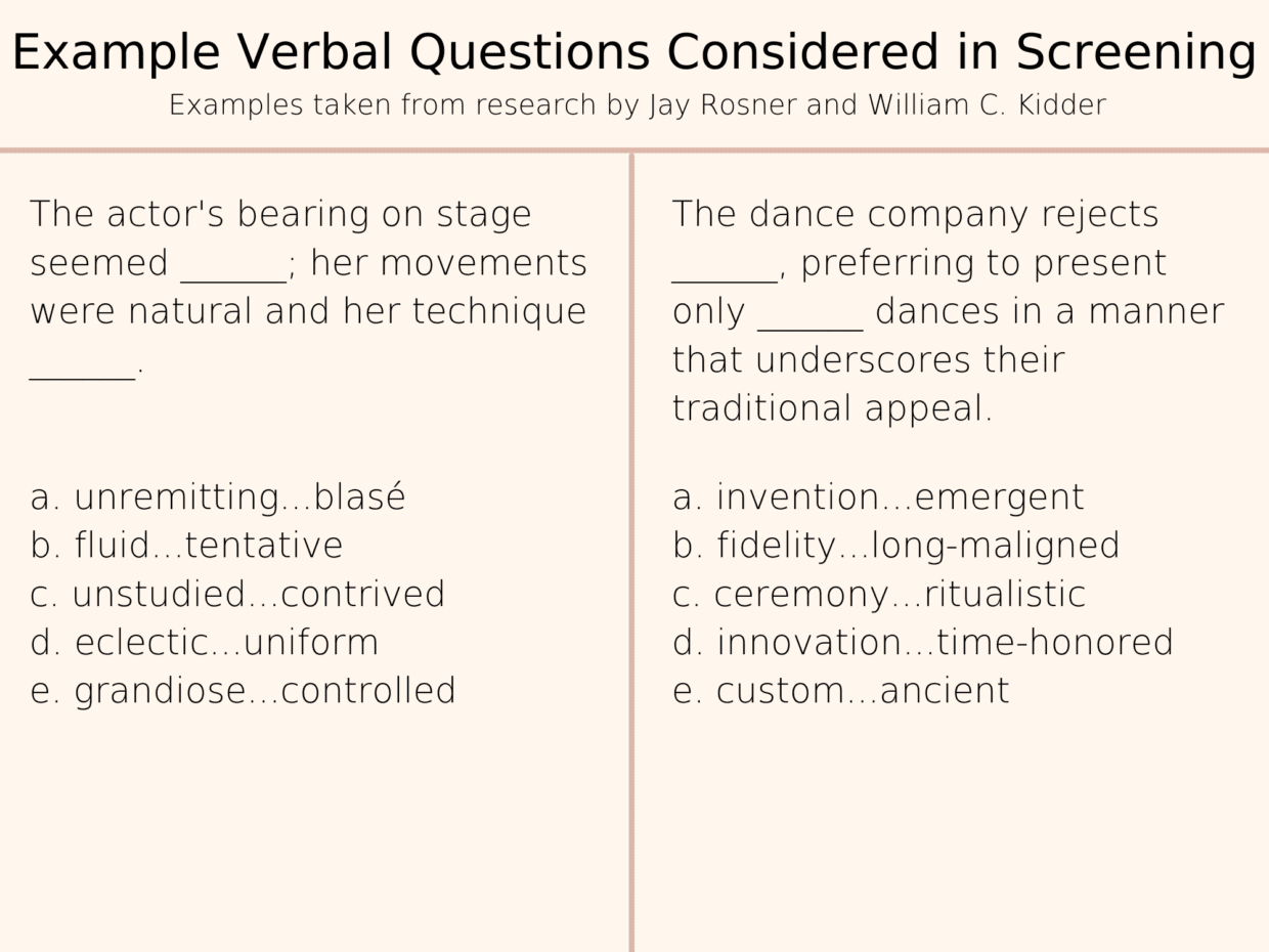 Researchers like Jay Rosner, an expert on college admissions tests and executive director of The Princeton Review Foundation, have used “item-level data,” or data on how students around the nation and in different demographics did on particular questions, to look for skews. In pre-screening, when questions were tested before being put into official exams, they found that questions in which white students outperformed Black students were more likely to be chosen as questions for the actual SAT than questions on which Black students outperformed white students.