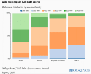 The College Board representative said, “We recognize real inequities exist in American education, and they are reflected in every measure of academic achievement, including the SAT and other standardized assessments. Performance differences across groups of students reflect an unequal K–12 system.”The majority of students nationally live in “racially concentrated” school districts; as school segregation has only increased, the racial makeup of schools often correlates to its funding and resources. In 2016, for example, predominantly white districts nationwide had about $2,200 more funding per student than nonwhite ones.