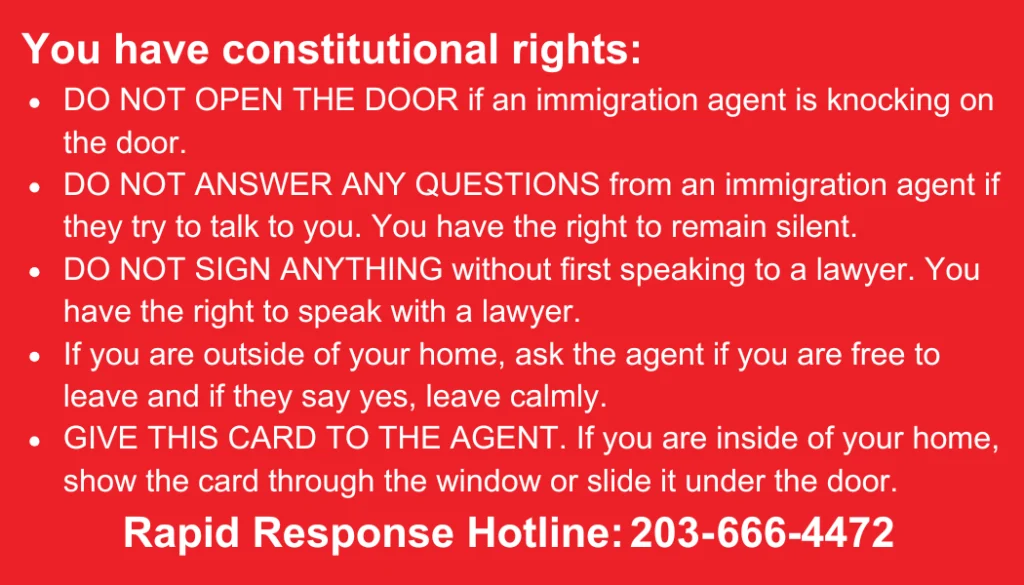 - If you are arrested, immediately notify ICE of any medical needs or childcare responsibilities.
