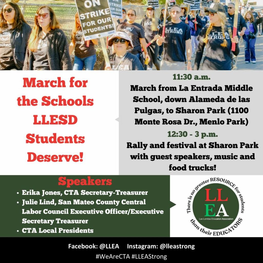On Thursday night, LLEA announced plans to march from La Entrada to Sharon Park, where representatives from the California Teachers Association would give speeches in support of the union.